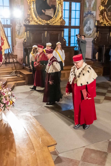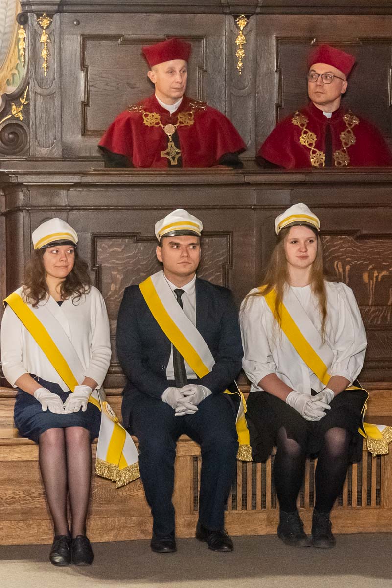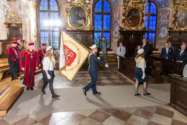 Następnie odbyła się immatrykulacja nowych studentów i studentek, reprezentujących jedenaście wrocławskich uczelni. Tę część prowadził prof. Czesław Zając, rektor Uniwersytetu Ekonomicznego.
